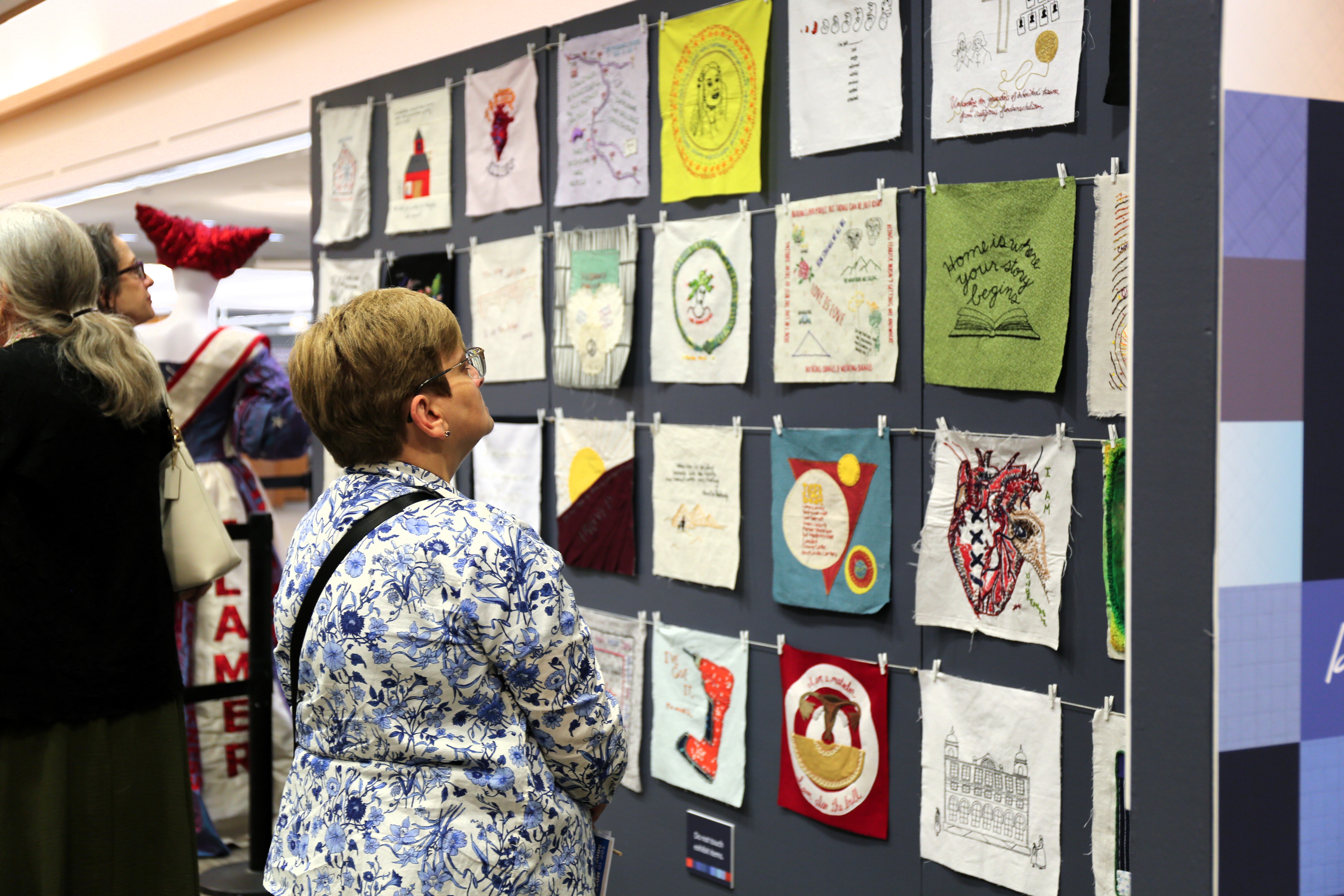 Partners, community members and more stopped by the library on Thursday, June 12 to be among the first to view the exhibit including community-driven quilts, art projects created through craftivism and more, all curated by the library in partnership with artist and activist Shannon Downey. In the spirit of community, 279 people contributed to the pieces that are on display in the library throughout June and July.