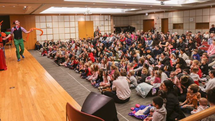 Organized by the library’s Youth Services team, the celebration features activities that lead up to a festive countdown at noon instead of midnight. This year, the celebration included a live performance by Smarty Pants and His Big Balloon Show which featured magic, comedy and Smarty’s award-winning balloon props.